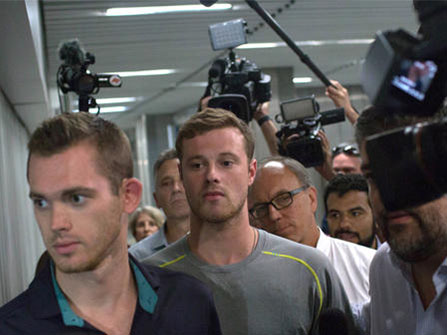 This all began Sunday, when Conger, Bentz, Lochte, and their other teammate, Jimmy Feigen, filed a police report which stated they'd been held at gunpoint. But Brazilian police were suspicious when the swimmers each gave different accounts of what happened.